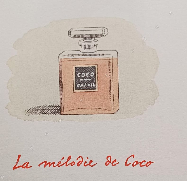 4 compositions rehaussées au pochoir par Edy Legrand et une signée René Lelong.Sur un texte " La Mode" pour copie conforme; Marie Bertin.On joint le feuillet volant sur papier mince imprimé recto verso